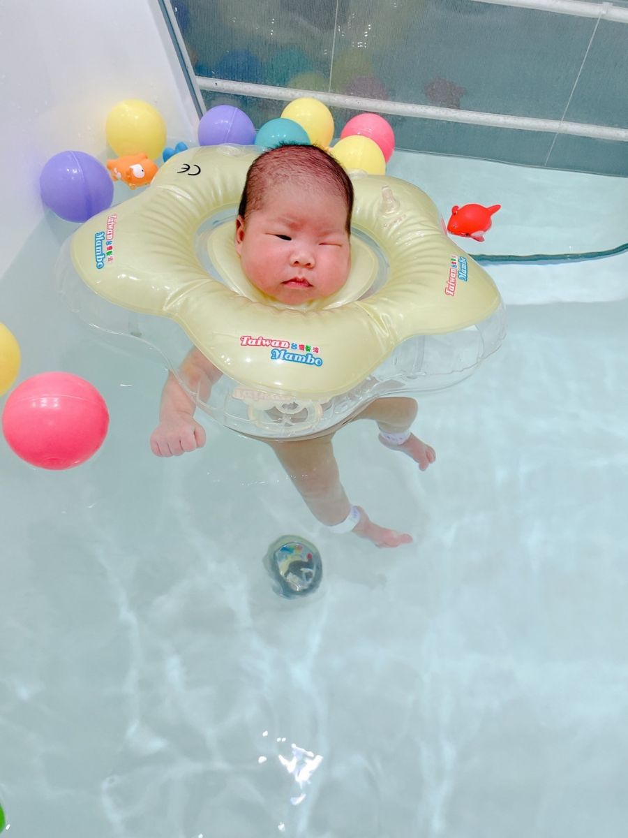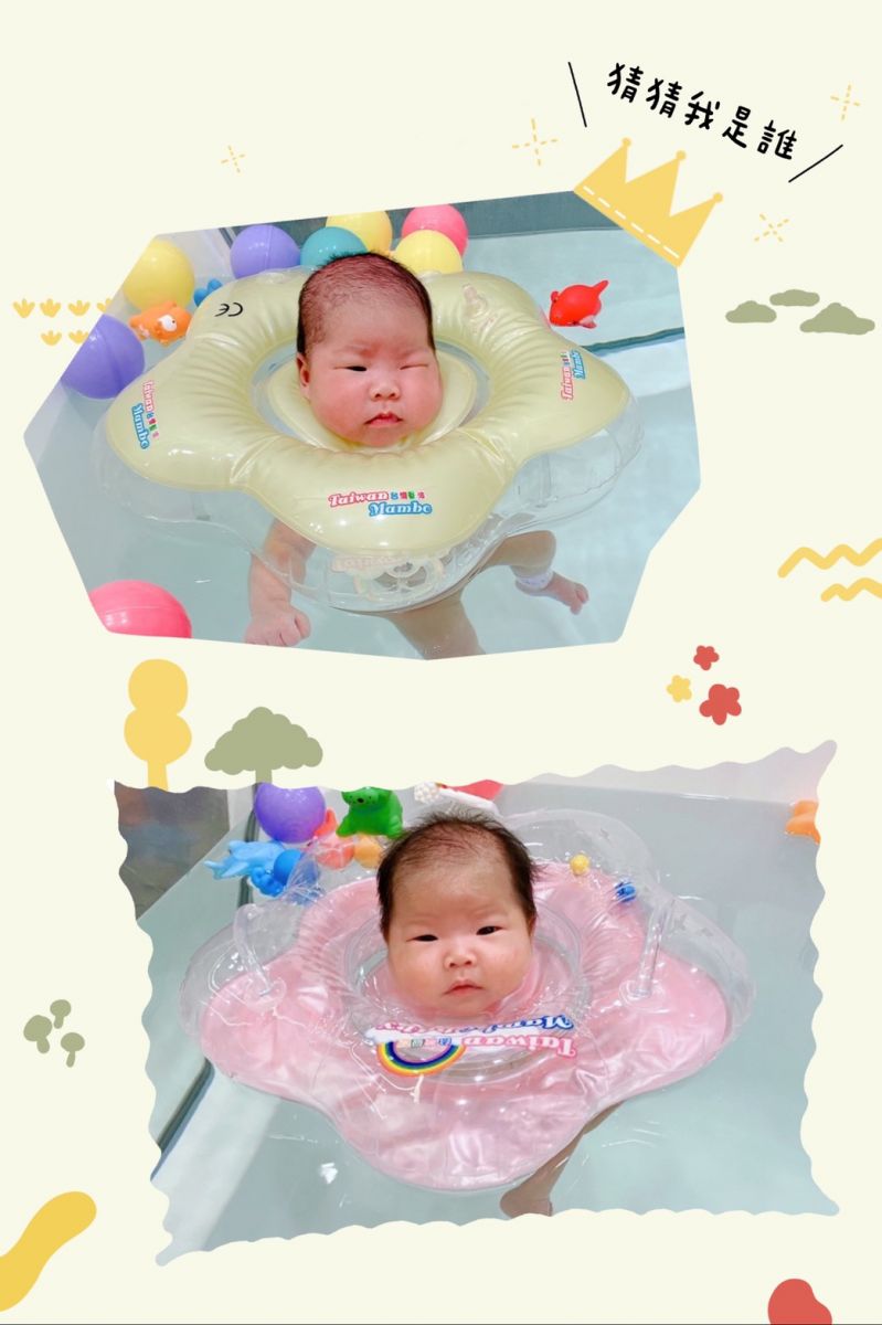 紅色泳圈的是姊姊;黃色泳圈的是妹妹