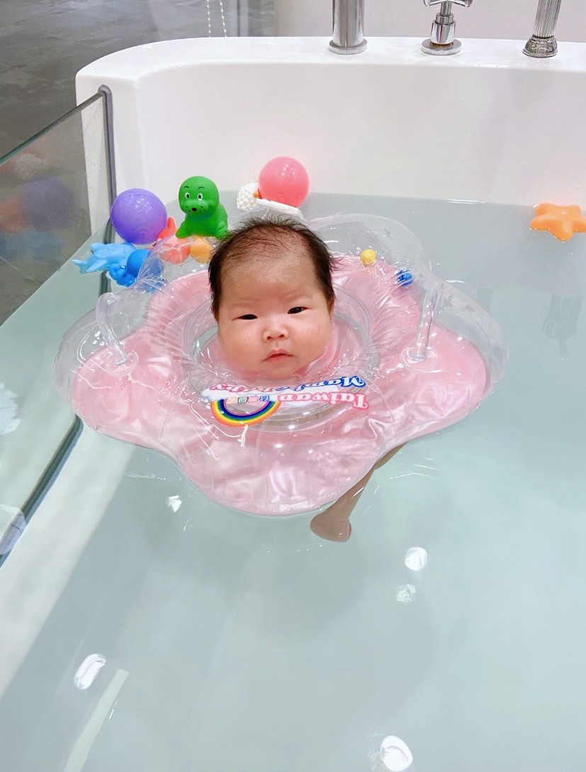 紅色泳圈的是姊姊;黃色泳圈的是妹妹