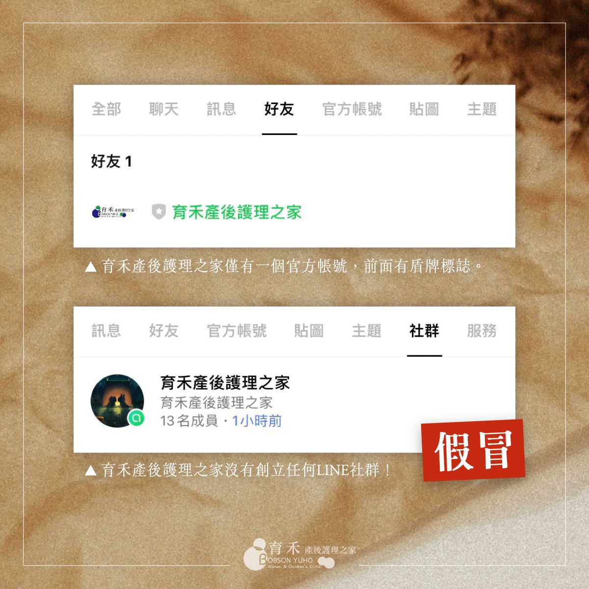育禾產後護理之家LINE官方帳號僅有一個